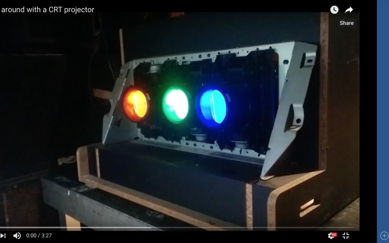 A modified cathode ray projector uses 31000 volts to fire a steady stream of electrons. Software generated musical signals are then used to control a magnetic field, which in turn deflects the electrons to project an image. The left audio channel drives the vertical deflection of the cathode ray projector and the right channel drives it's horizontal deflection. Combined parametric equations create Lissajous figures and complex drawings with sound.